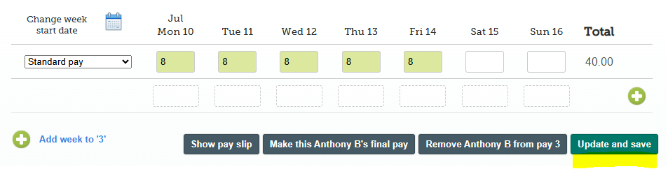 - Update and Save the Timesheet and press 'Make this the Final Pay' button to set the final pay.