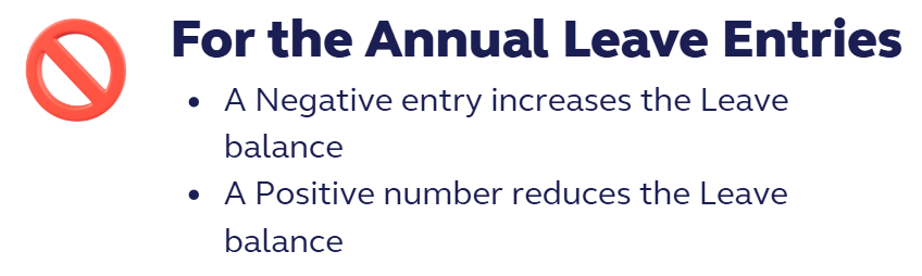- As we are adding the over-deducted leave back into the balance, we are entering the number of hours as a negative amount.